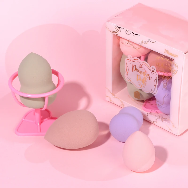Special Price of XIXI makeup sponge 4pcs/set with holder egg gourd water drop shape bigger in water wet dry dual use