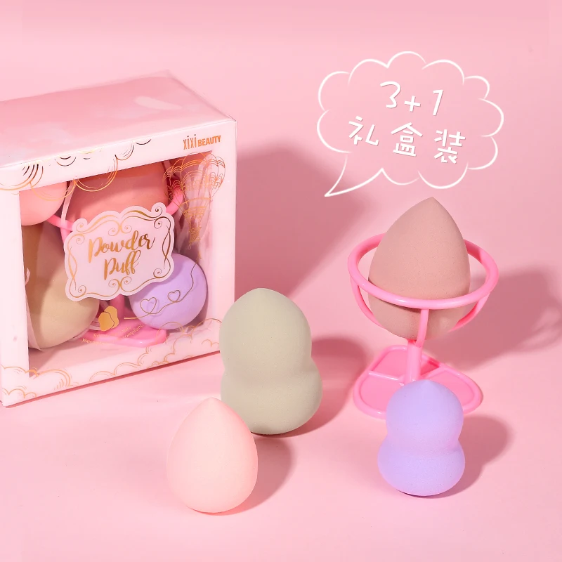 .image of XIXI makeup sponge 4pcs/set with holder egg gourd water drop shape bigger in water wet dry dual use